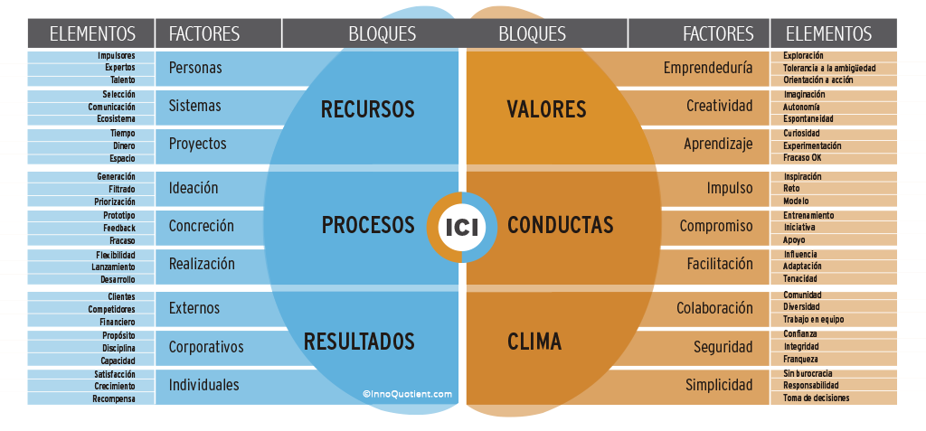 Los 54 elementos del modelo InnoQuotient le brindan las palancas para impulsar su organización hacia la transformación.